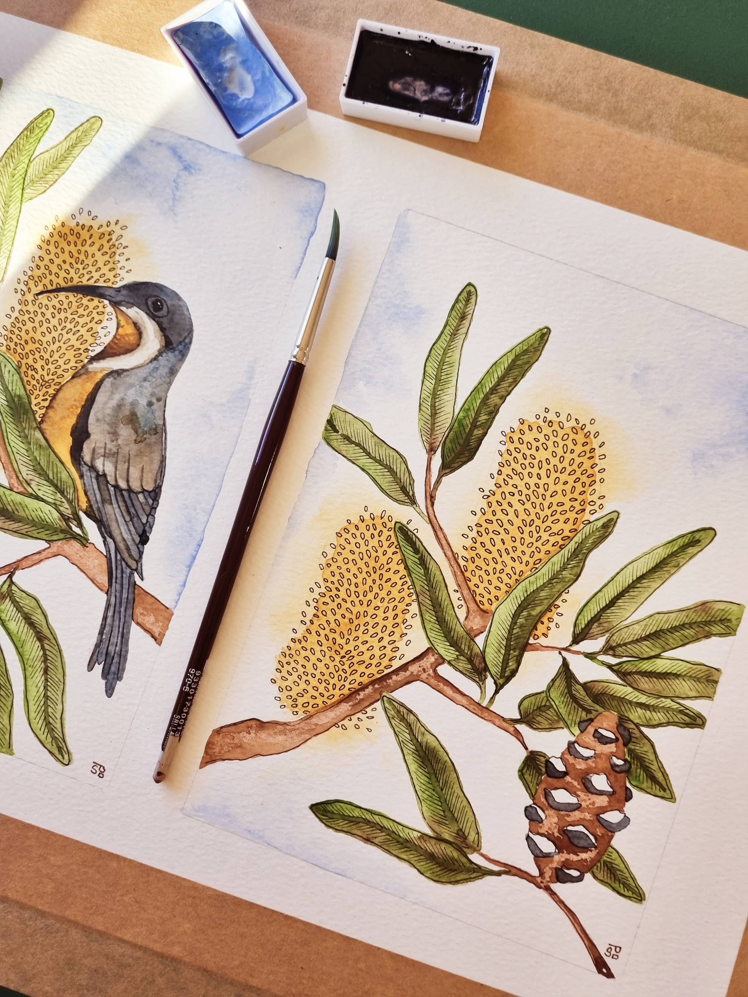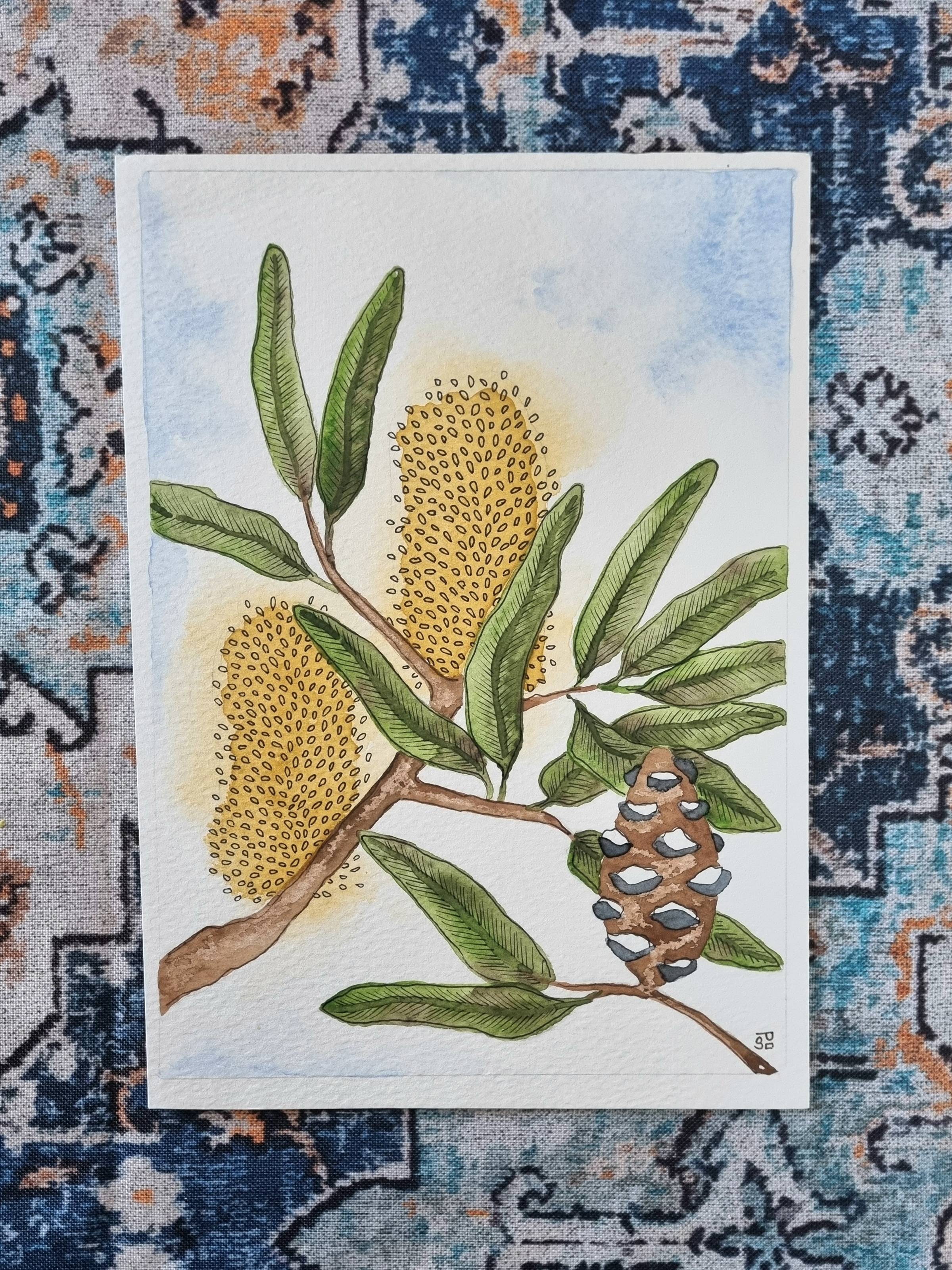 Todays release is a small cute piece. I love the native yellow banksias we have growing wild throughout the state. They are sweet and the soft yellows and light greens are iconic to our bushland.